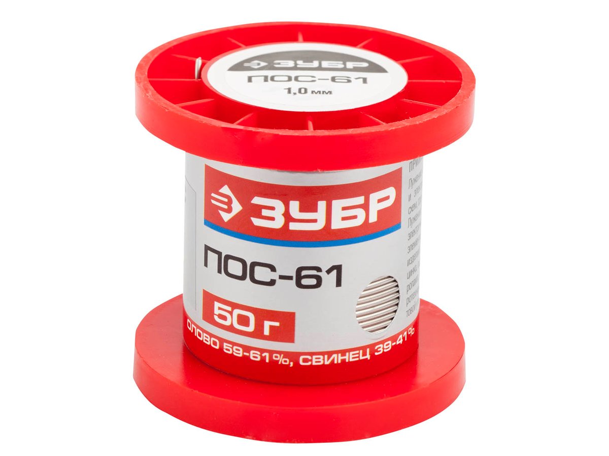 Припой ЗУБР, ПОС 61, проволока, 50г, 1мм 55450-050-10