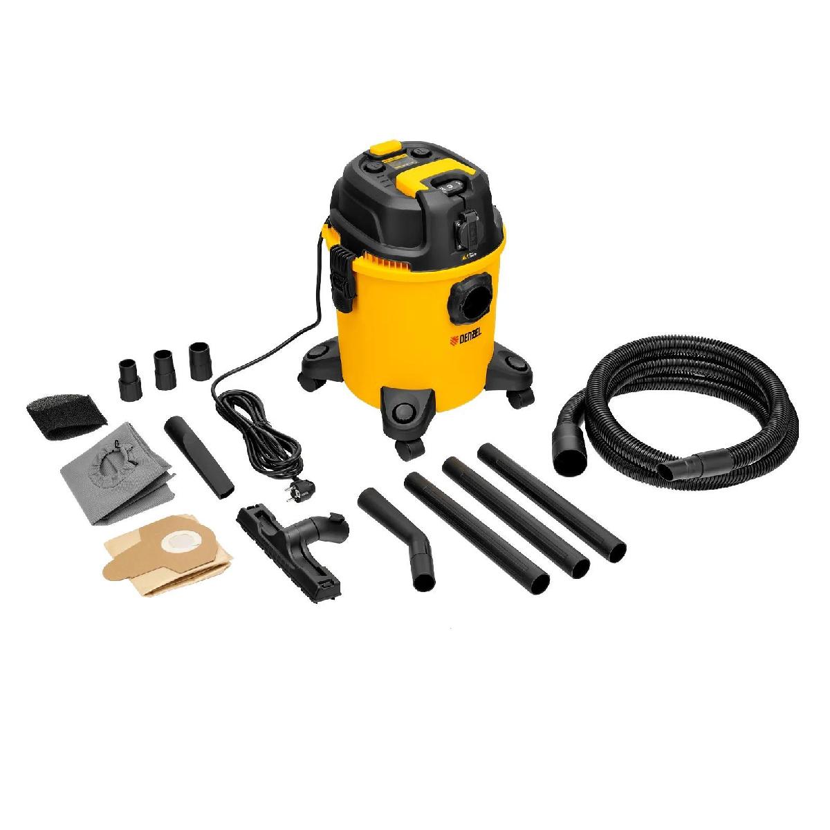 Пылесос строительный RVC20, 1400 Вт, бак 20 л, шланг 3 м, розетка с автосинхр.// Denzel RVC20