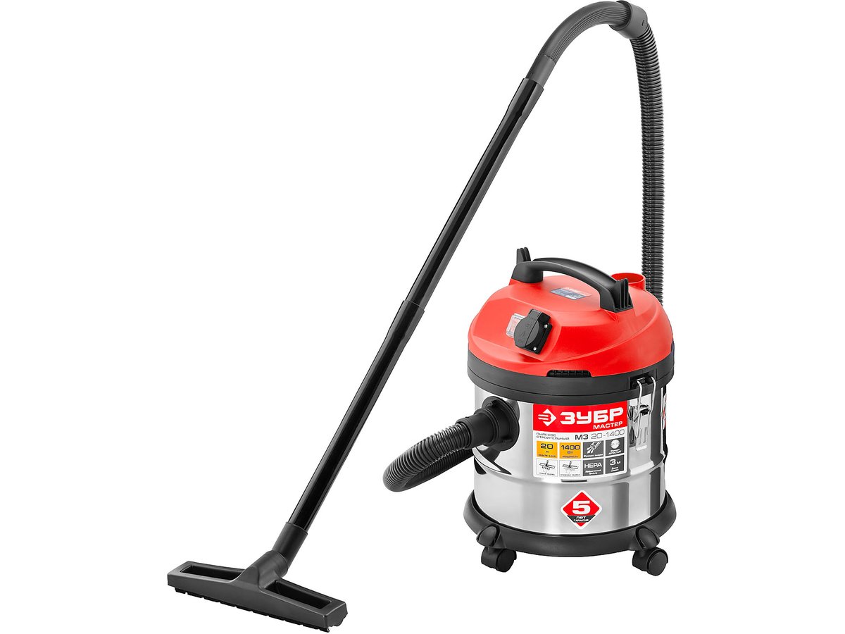 Пылесос ЗУБР "МАСТЕР" строительный, модель М3-20, 20л, 1400Вт, сухая и влажная уборка, корпус из нержавеющей стали, розетка до 2000Вт