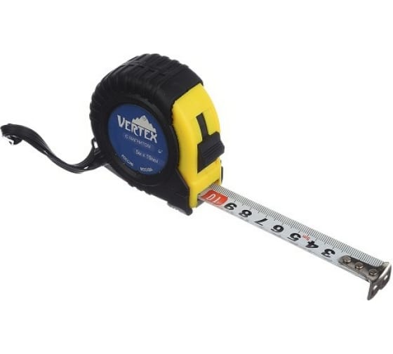 Рулетка vertextools магнитная 5х25 мм 3120-05-25 применяется для проведения измерений при строительных и монтажных работах. При изготовлении корпуса рулетки применена ударопрочная пластмасса, корпус частично обрезинен. Устройство и обводы корпуса рулетки имеют эргономичную направленность. Механизм фиксации надёжно останавливает мерную ленту. Измерительная лента имеет полимерное покрытие, стойкое к абразивному воздействию. Основание ленты оснащено магнитным зацепом.
