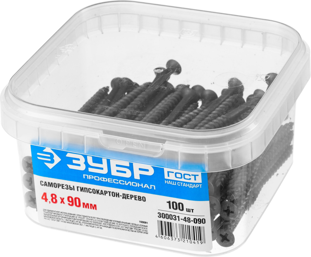 Саморезы ЗУБР фосфатированные с крупной резьбой, по дереву, PH2, 4,8 x 90 мм, 100 шт 300031-48-090
