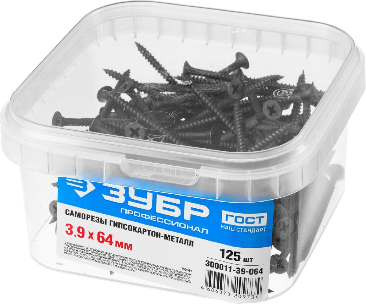 Саморезы ЗУБР фосфатированные с мелкой резьбой, по дереву/металлу, PH2, 3,9 x 64 мм, 125 шт 300011-39-064