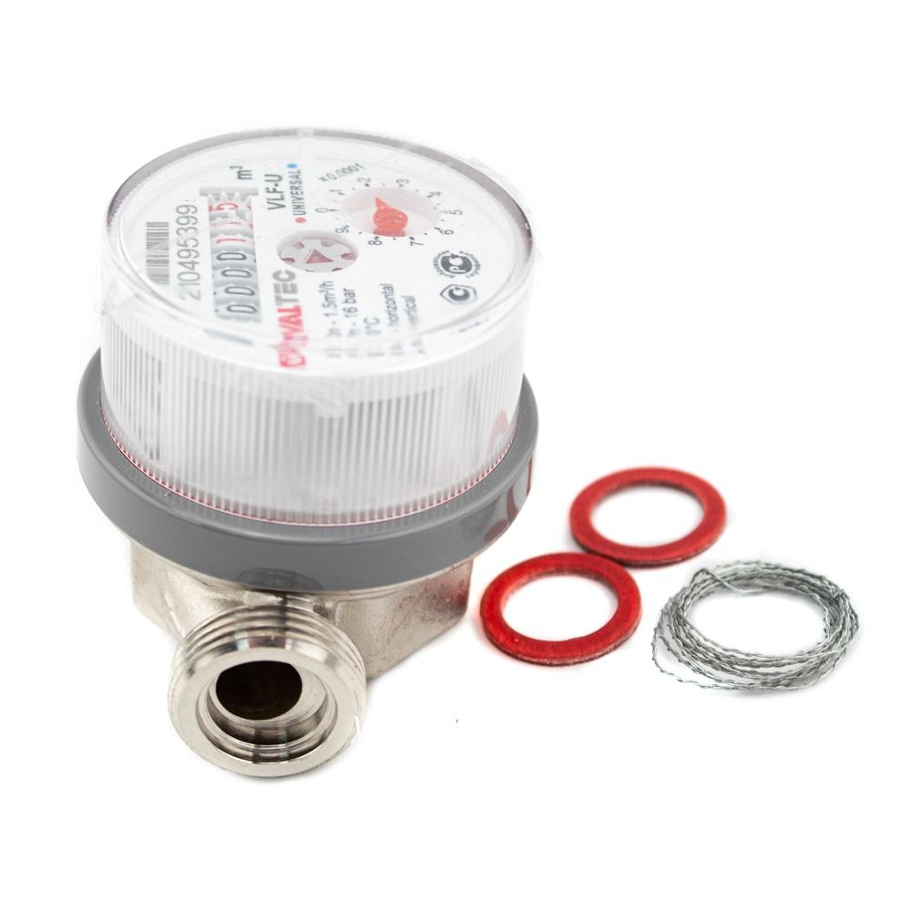 Счетчик воды универсальный 1/2' без сгонов межповерочный интервал 6 лет до +90 град 1.5м3 80 мм (VLF-15U-L.80)