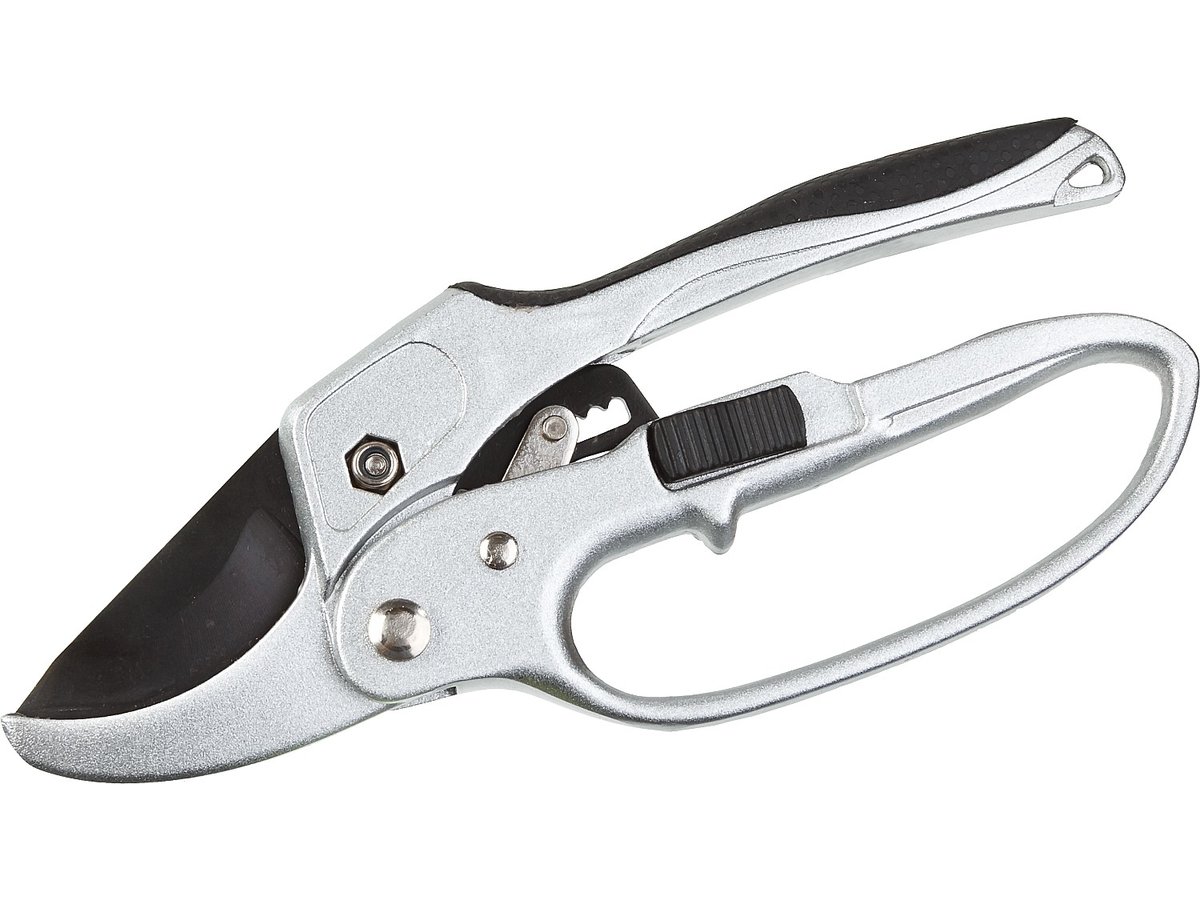 Секатор GRINDA алюминиевые ручки, храповый механизм, с эфесом, округлые лезвия, 200мм