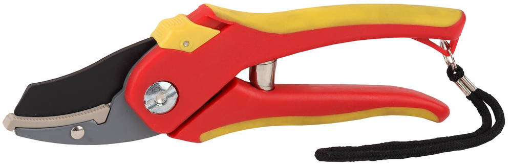 Секатор GRINDA двухкомпонентные ручки, обычный механизм, без эфеса, округлые лезвия с упорной наковальней, 205мм