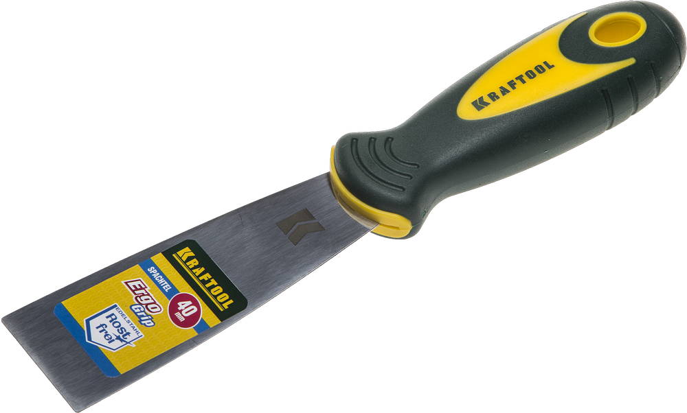 Шпательная лопатка KRAFTOOL с 2-компонент ручк, профилиров нержав полотно, 40мм 10035-040