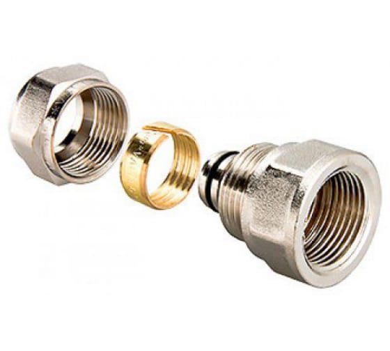 Прямой латунный никелированный фитинг для соединения металлополимерной трубы и компонента системы с резьбовым подключением. Резьба фитинга – внутренняя трубная по ГОСТу 6357