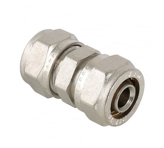Прямой латунный никелированный фитинг для соединения металлополимерных труб. Имеются равнопроходные модели и модели с переходом на другой диаметр