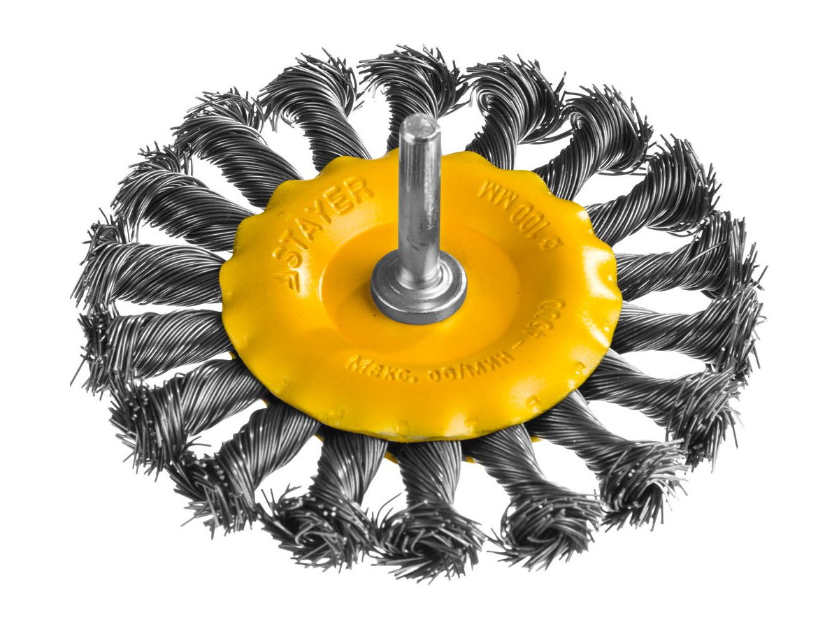 STAYER "PROFESSIONAL". Щетка дисковая для дрели, жгутированная стальная проволока 0,5мм, 100мм