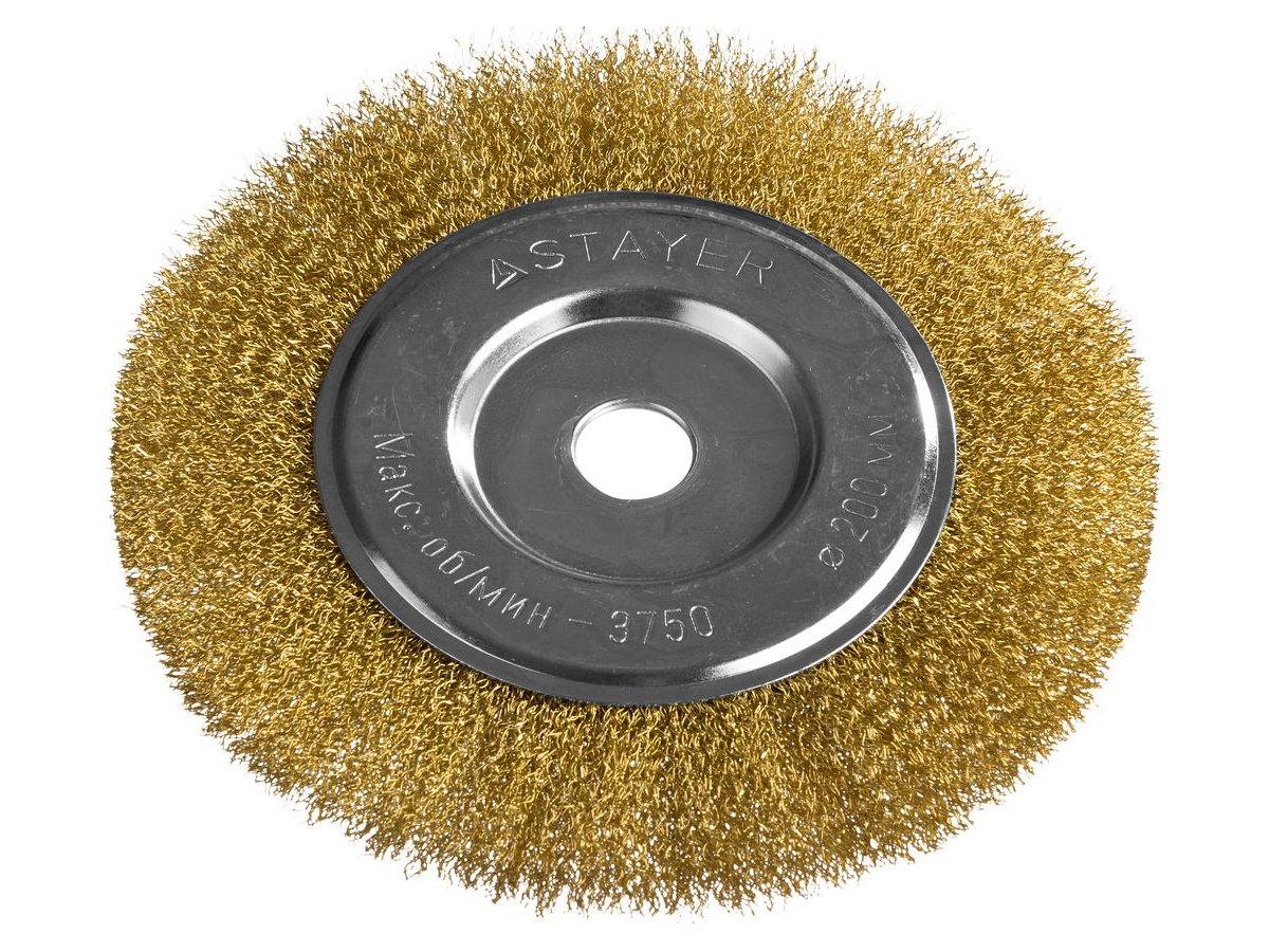 STAYER "PROFESSIONAL". Щетка дисковая для УШМ, витая стальная латунированная проволока 0,3мм, 200ммх 35122-200