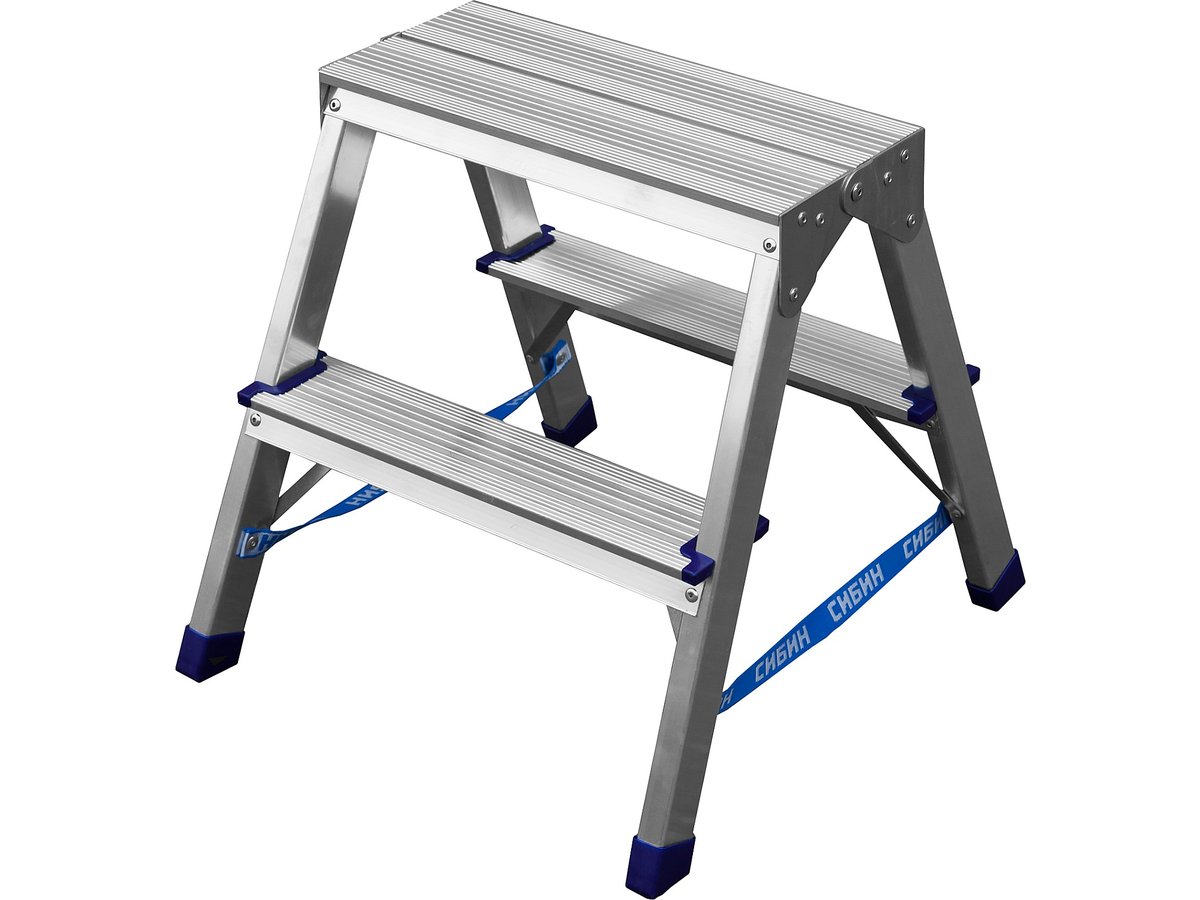Стремянка СИБИН двухсторонняя алюминиевая, 2 ступени