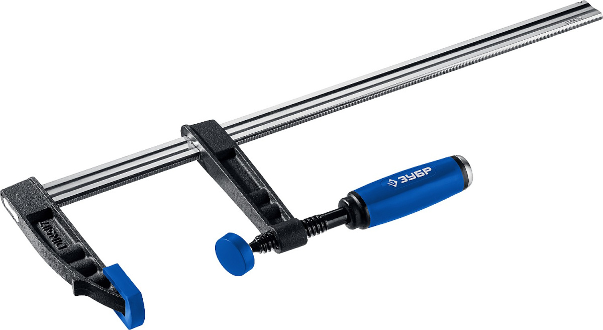 Струбцина ЗУБР "ПРОФЕССИОНАЛ", тип "F", двухкомпонентная ручка, стальная закаленная рейка, 120х500мм 32155-120-500