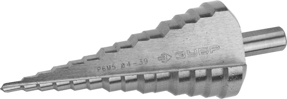 Сверло ЗУБР ступенчатое по сталям и цвет.мет.ст.Р6М5,d4- 39мм,14ступ.d4-39,L -113 мм, трехгран.хв. 10мм
