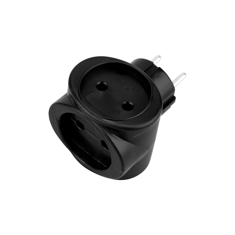 Тройник на 3 гнезда, б/з, биметалл, 220В, 16А, черный, REXANT 11-1064 (etm11-1064) etm11-1064