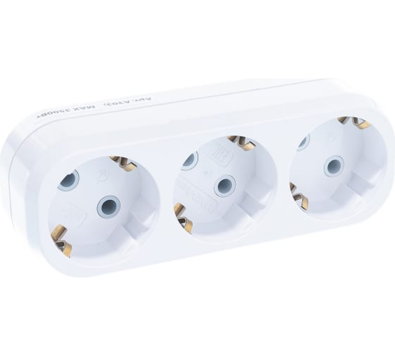 Разветвитель 3 гнезда с заземлением плоский 16А 250B