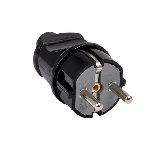 Вилка прямая усиленная с заземлением черная 16А 250В EKF Proxima