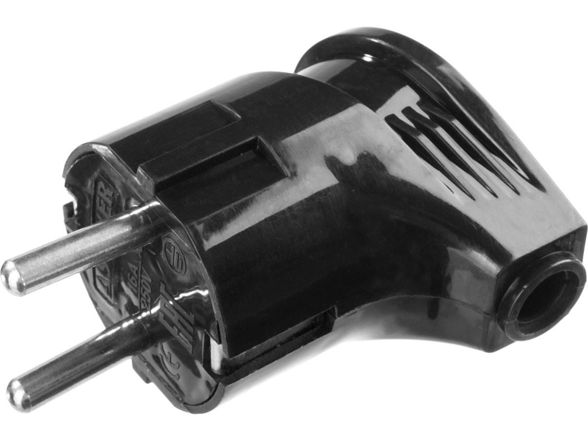 Вилка STAYER "MASTER" электрическая, с заземлением, угловая, 16А/220В, черная 55161-B