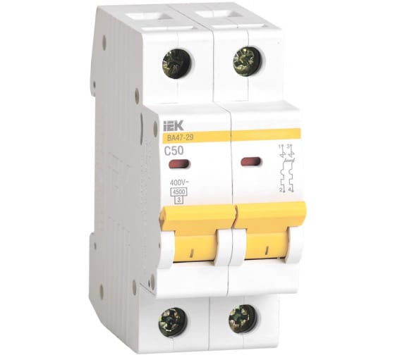 Выключатель автоматический двухполюсный 50А С ВА47-29 4.5кА