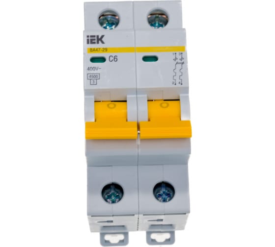 Выключатель автоматический двухполюсный 6А С ВА47-29 4.5кА