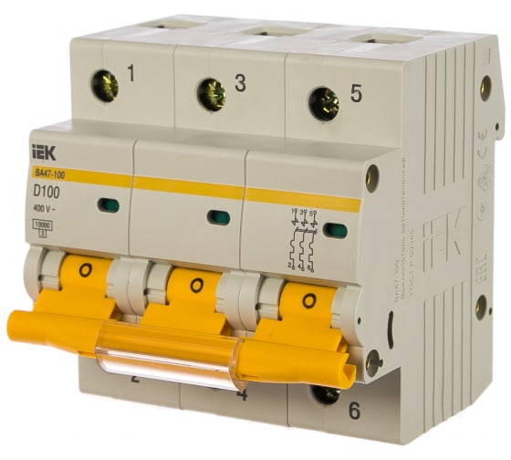 Выключатель автоматический трехполюсный 100А D ВА47-100 10кА