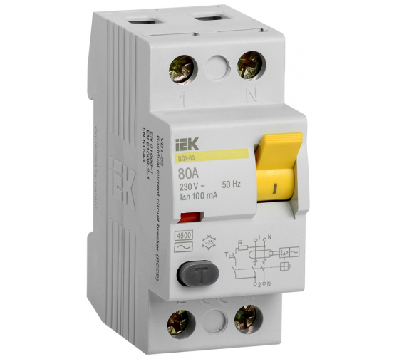 Выключатель дифференциального тока (УЗО) ВД1-63 2п 80А 100мА АС(Электромеханическое) MDV10-2-080-100
