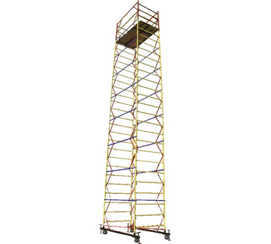 Вышка ВСП-250 шириной 1.2х2.0 метра - универсальная передвижная модель для строительных, ремонтных, монтажных работ как внутри помещения, так и для уличных работ. Легко собирается без необходимости использования специального инструмента (все элементы соединяются флажковыми механизмами). Ее просто перемещать по объекту за счет наличия больших прорезиненных колес, которые также снабжены фиксаторами положения. Позволяют тонко подрегулировать высоту вышки и зафиксировать ее от нежелательных перемещений во время работ. Данную модель вышки можно доращивать по высоте дополнительными секциями до 19 метров (не входят в стоимость). Секции вышки снабжены диагональными металлическими стяжками. Они обеспечивают дополнительную устойчивость при резких порывах ветра. Настил изготовлен из фанеры толщиной 10 мм и имеет люк для безопасного и удобного перемещения во время работ. Если докупить еще один настил, можно работать вдвоем: вышка выдерживает вес до 250 кг.