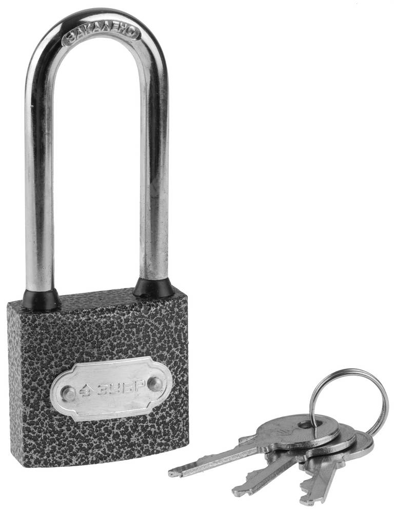 Замок ЗУБР "МАСТЕР" навесной, металлический корпус, удлиненная закаленная дужка, 38мм