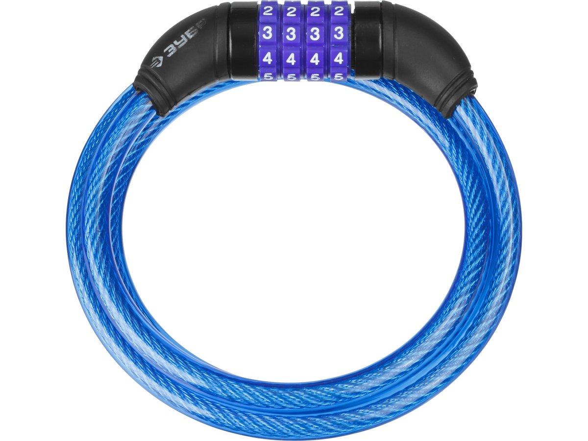 Замок ЗУБР "ПРОФЕССИОНАЛ", тросовый, кодовый, с изменяемым кодом, длина троса - 1200мм, d 10мм
