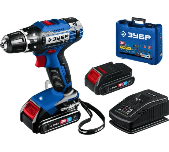 ЗУБР 20В, 2 АКБ (2Ач), в кейсе, дрель-шуруповерт, Профессионал. DL-201-22