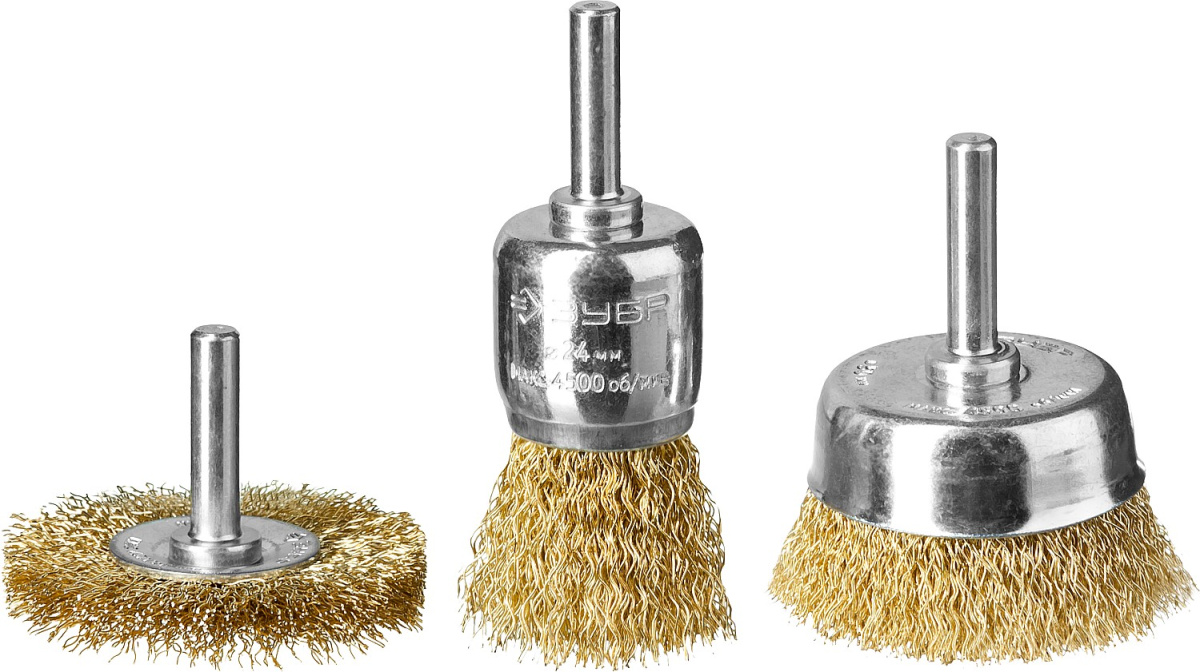 ЗУБР "ПРОФЕССИОНАЛ". Набор щеток для дрели, витая стальная латунированная проволока 0,3мм, 24/50/50мм, 3шт
