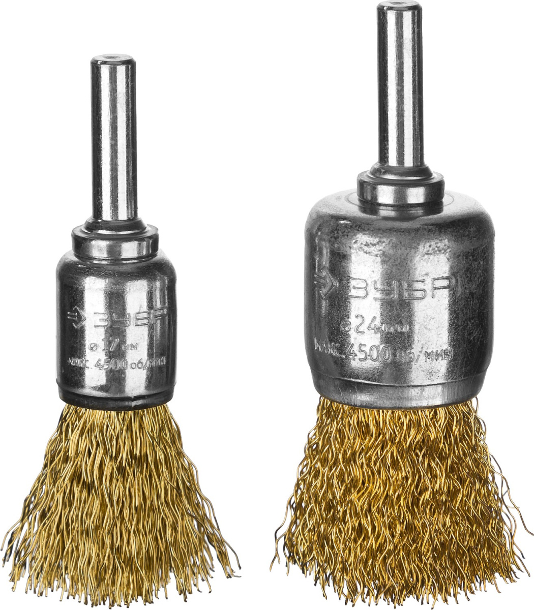 ЗУБР "ПРОФЕССИОНАЛ". Набор щеток кистевых для дрели, витая стальная латунированная проволока 0,3мм, для дрели, 2шт
