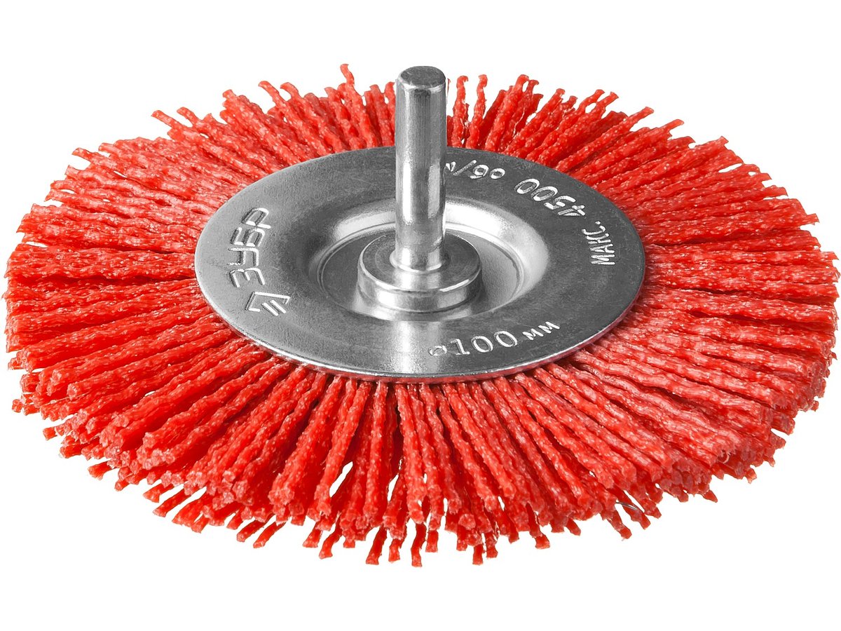 ЗУБР "ПРОФЕССИОНАЛ". Щетка дисковая для дрели, нейлоновая проволока с абразивным покрытием, 100мм 35161-100_z02