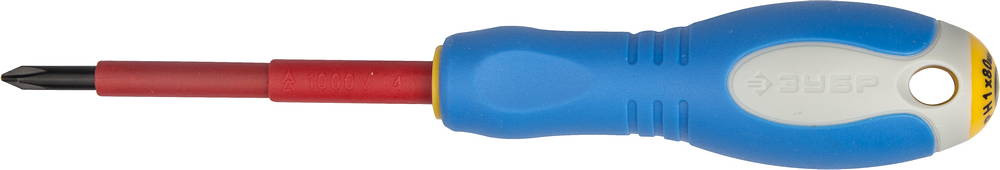 ЗУБР "ПРОФИ ЭЛЕКТРИК". Отвертка Cr-V, трехкомпонент рукоятка, высоковольтная до ~1000В, PH №1, 80 мм