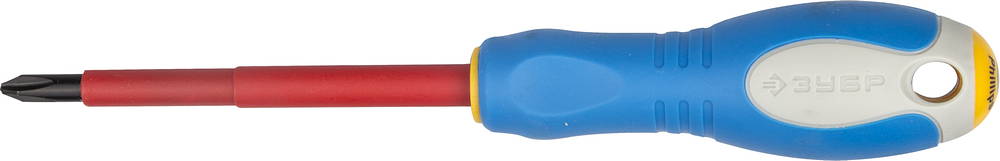 ЗУБР "ПРОФИ ЭЛЕКТРИК". Отвертка Cr-V, трехкомпонент рукоятка, высоковольтная до ~1000В, PH №2, 100 мм