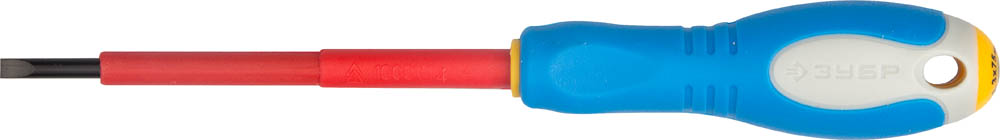 ЗУБР "ПРОФИ ЭЛЕКТРИК". Отвертка Cr-V, трехкомпонент рукоятка, высоковольтная до ~1000В, SL, 3,0x75 мм