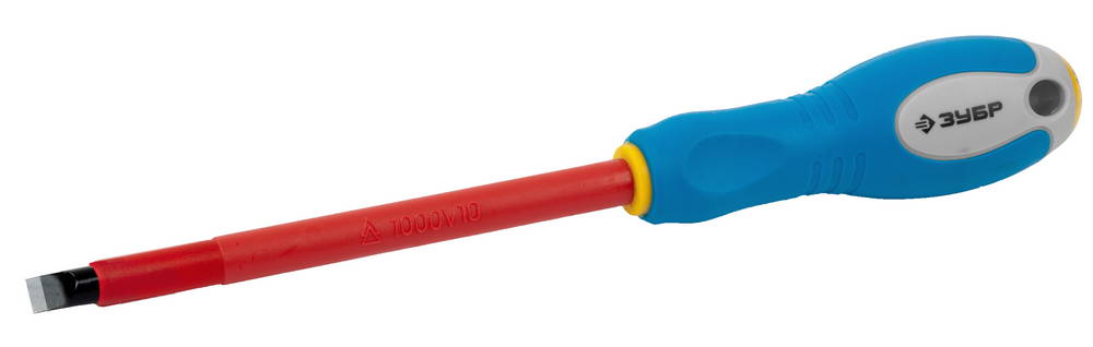 ЗУБР "ПРОФИ ЭЛЕКТРИК". Отвертка Cr-V, трехкомпонент рукоятка, высоковольтная до ~1000В, SL, 8,0x175 мм
