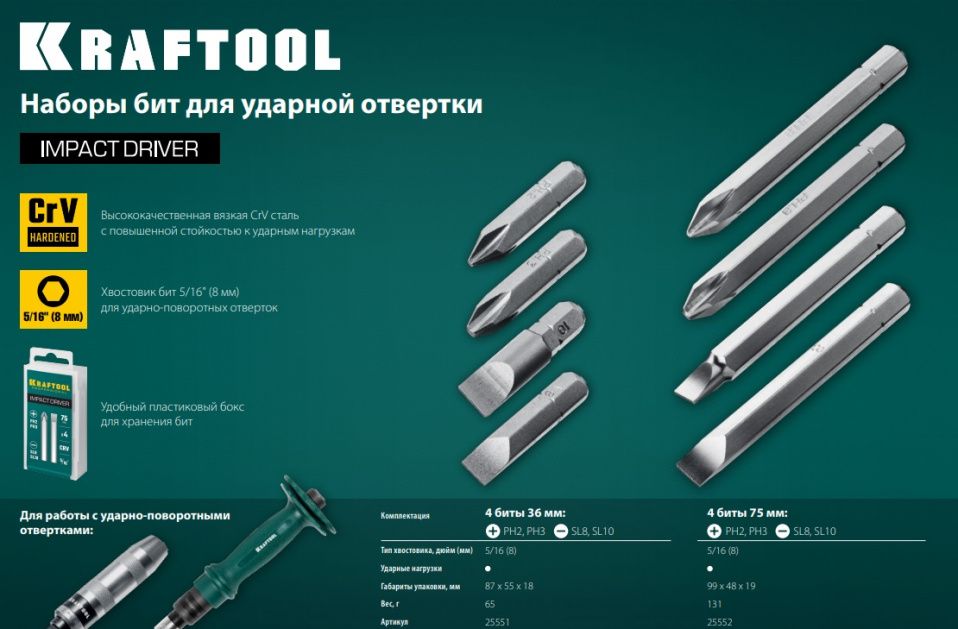 Наборы бит для ударных отверток KRAFTOOL